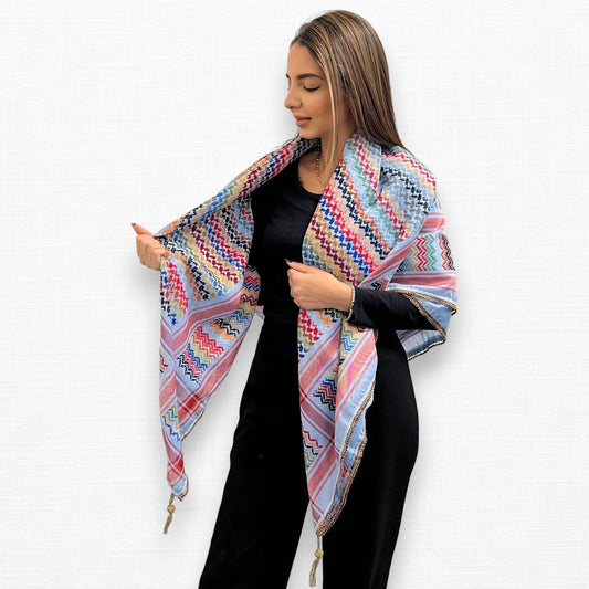 Vibrant Sky Blue Kufiya (Keffiyeh) | Made in Jordan