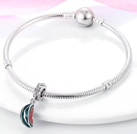 Watermelon Sterling Silver Charm – Fits Pandora-Style Bracelets
