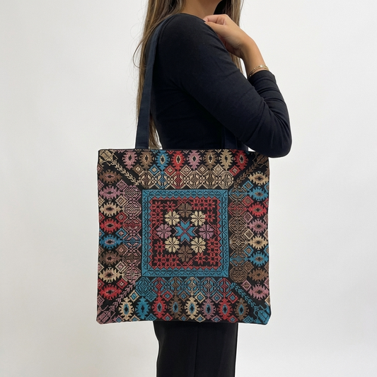 Midnight Mosaic – Tatreez Tote Bag | Palestinian Embroidery