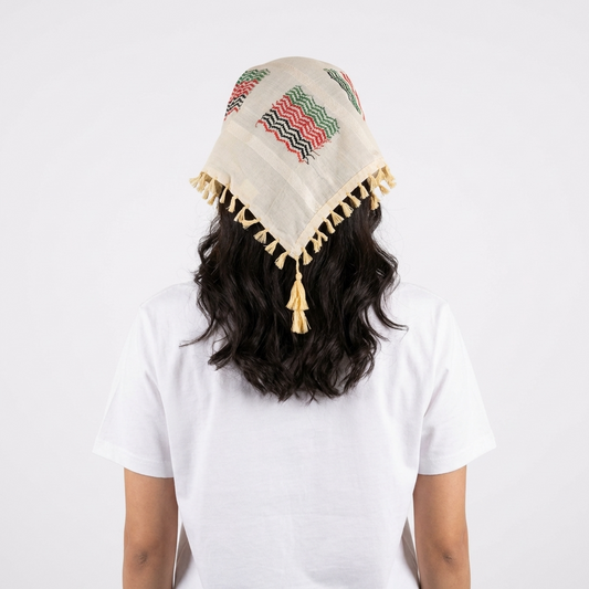 All White Kufiya Bandana - Beige Tatreez