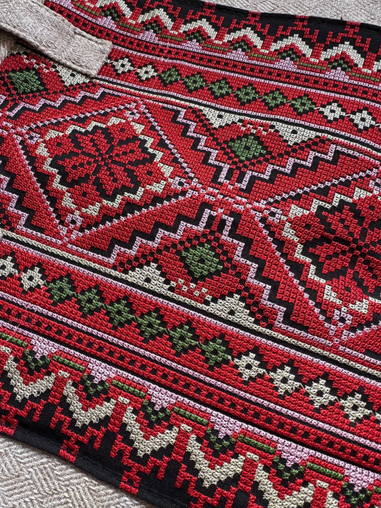 Handmade Tatreez Tote Bag – Mosaic of Red Motifs | Palestinian Embroidery