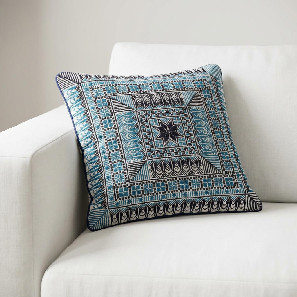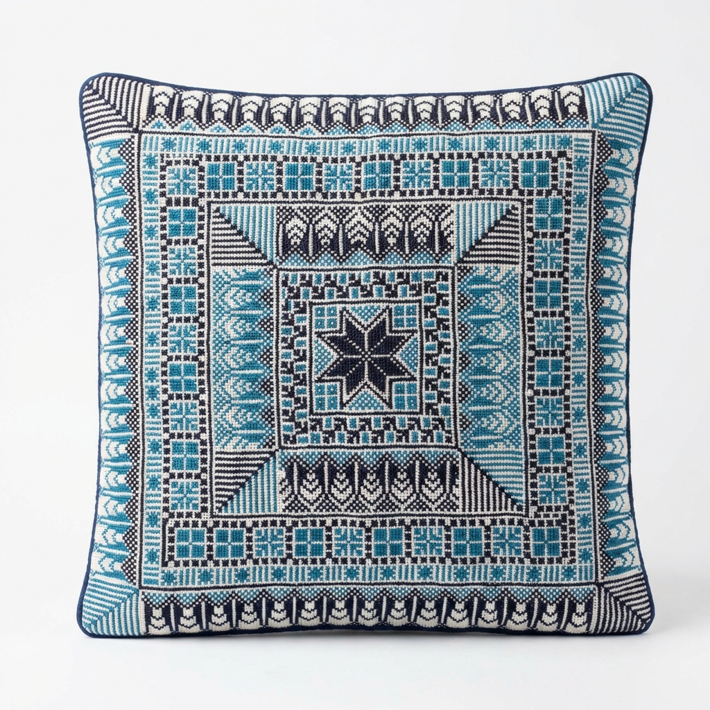 Blue Handmade Tatreez Cushion Cover – 16x16" – February 2026 Edition